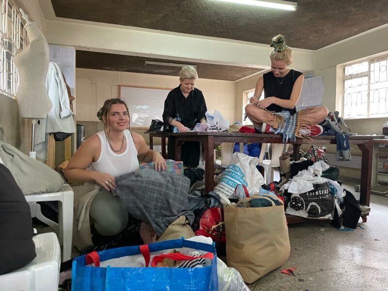 Seni oleme koostööd teinud kohaliku tekstiiliülejääkide ettevõttega, ACT Africa, mis on lahkelt meile oma uksed avanud ja töökultuuri tutvustanud. Ettevõte tegeleb rõivaste ja aksessuaaride kogumisega asukoha põhiselt, et neile uus elu anda. Väärtustava taaskasutuse näol on see ka meie ülesandeks – anda rõivastele, mis määrdunud või katki uus elu. Testime kanga manipuleerimise tehnikaid, anname uute lõigetega kangajuppidele uue määratluse ja kohastame nad tänapäeva moesuundadega.