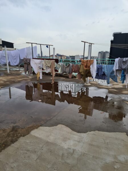 Senised päevad on möödunud põhiliselt meie kontseptsiooniga sobivaid rõivaid sorteerides ja puhastades. Pesumasin on pidevalt töös ja oleme vennastunud kohalikega korteri katuse pesunööriparklas. Kõik kohad, mis puutuvad päikese ja tuulega kokku, sealhulgas meie oma rõdu, kasutame pesukuivatina.