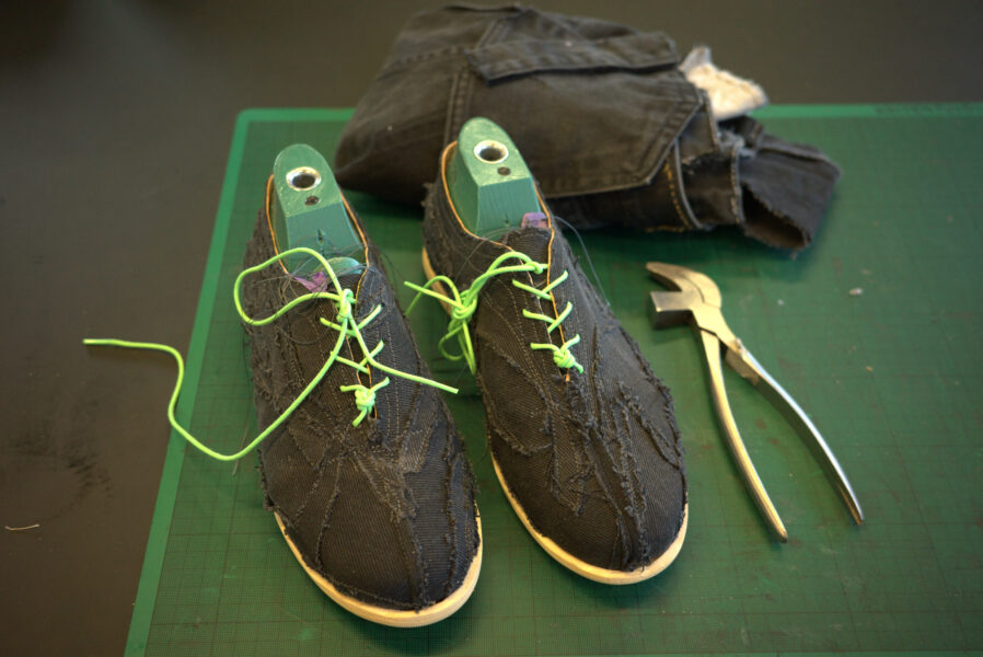 Tudengid jagunesid kahte grupp, ühed keskendusid jalatsite ja teised kottide valmistamisele. Tööks kasutati teksajääke Uuskasutuskeskusest, Reet Ausi stuudiost ja Guildi poest. Lähtepunktiks oli materjal ise. Tudengid valisid jääkide seast sobiva viimistluse ja vajaliku koguse materjali ning töötasid selle põhjal välja oma disaini. Mõned kombineerisid väiksemaid jääke, teised aga kasutasid ära terveid teksapaare, näiteks valmis ühe tudengi kott koguni kuuest teksapaarist.