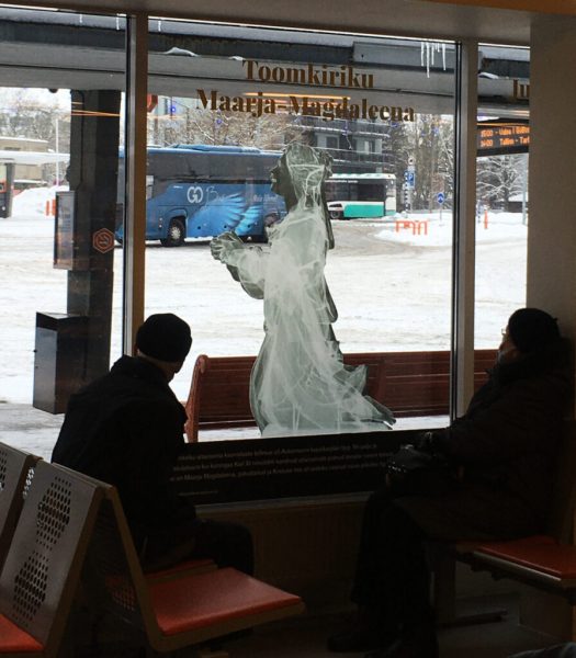 Tallinna Bussijaama juht Airika Aruksaar avas koostööidee tagamaad: „Tahame oma kliente ikka positiivselt üllatada ning pakkuda bussiootajale võimalust mõtiskleda ka teistel teemadel kui tavapärane punktist A punkti B jõudmine. Eesti Kunstimuuseumi näitus on samuti seotud reisimisega – eks ole ju ka puukujud Eesti kirikutest teinud oma ajutise rännaku Niguliste muuseumisse. Loodame, et sellest kasvab kena pikemaajaline koostöö.“