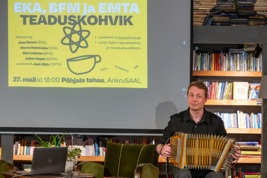 Aruteluõhtul esitles Juhan Uppin äsja ilmunud raamatut “Teppo tüüpi lõõtspilli traditsioonilise mängustiili kujunemine 20. sajandil ja traditsiooniteadliku esitluspraktika loomine” (EMTA Loovuurimused 6).