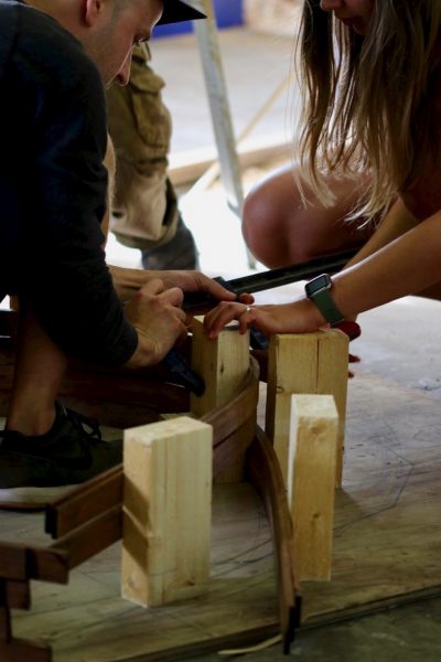 Tudengite töid aitasid teostada EKA puidutöökoja meister Rein Erdel ja kohalik meister Aimar Sillamaa. Puidu aurutamise tehnoloogiast andis tudengitele ülevaate Sõru paadimeister Tiit Laun.