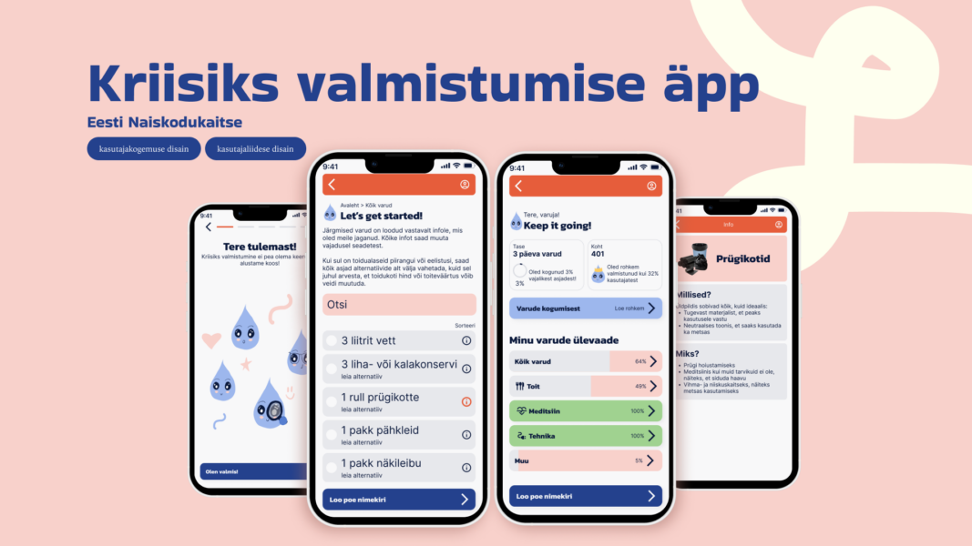 Eelmise semestri veetsin Naiskodukaitse Ole Valmis äpi kallal tööd tehes. Praegu olen teel Portugali vahetus õpingutele uut disainialast hingamist otsima ning samal ajal osalen kursakatega Service Design Challange’il.