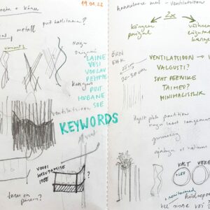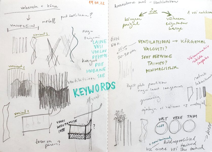 Mulle meeldib vaieldamatult kõige rohkem esialgne ideede põrgatamise etapp. See hetk, kui kogu tiim istub ühe laua taga ja hakkab mõtteid genereerima, üksteisega “vaidlema” selle üle, mis toimib või mitte – selle aja juures on midagi ääretult nauditavat ja köitvat (võibolla siinkohal lööb välja ka vana hea keskmise lapse iseloom, kellele meeldib argumenteerimine). Ideede põrgatamisega käsikäes käib ka visandamine, mis on mu lemmikviis mõtete talletamiseks. Täidan iga projektiga vähemalt kaks visandiraamatut, hiljem on hea n-ö tagasi kerida ja vaadata, kui palju suudab üks mõte lühikese ajaga areneda.