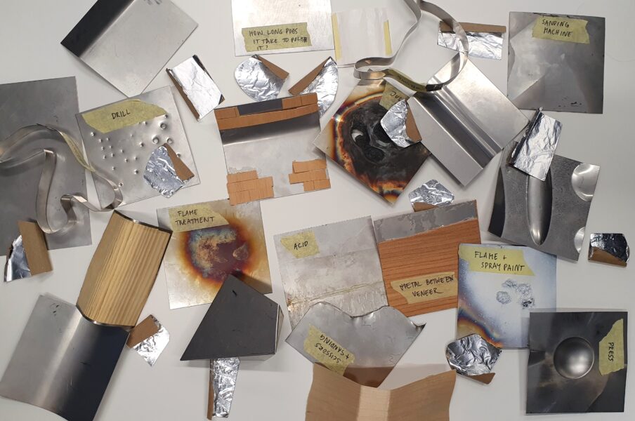 Seni on mu lemmik olnud Lutheri vineerivabriku projekt, kus pidime leidma tehase ajaloost mõne huvitava fakti ja selle ümber toote ehitama. Ma leidsin vabriku toodangust materjali Plymax – metalliga kaetud vineeri – ja sellest avastusest sai alguse vägagi materjalikeskne ja eksperimentaalne disainiprotsess peeglite loomiseks. Projekti käigus õppisin selgeks kõiksugused metalli töötlemise võimalused ja sain teada, et kahemeetrine metall-leht mahub ära ka Ford Focusesse. Kõige suurem “heureka” hetk oli aga siis, kui mõistsin, et selline abstraktne, sürr, kuid samal ajal praktiline tootedisain on see, mis mind köidab.
