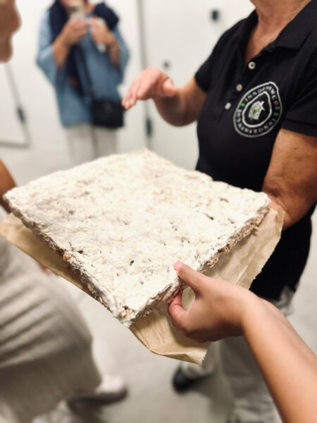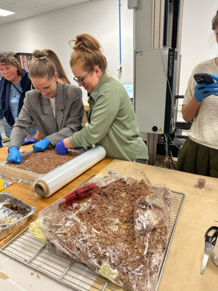 Dr Črtomir Tavzes tutvustas laboreid ning andis põhjaliku sissejuhatuse seentest, kuidas seenesüsteem mõjutab konserveerimist ja puitu. Tudengid said lähedalt proovida seentel põhineva materjali loomise protsessi ning tutvuda erinevate puidutöötlustehnikatega, mis saavutatakse rõhu ja kuumuse abil. Eriti põnev oli näha, kuidas odavast puidust saadi pressimise teel tugev puitmaterjal. Kuigi see protsess on praegu kulukas, võib see tulevikus pakkuda võimalusi soodsama kvaliteetse puitmaterjali tootmiseks.