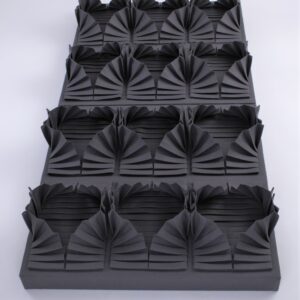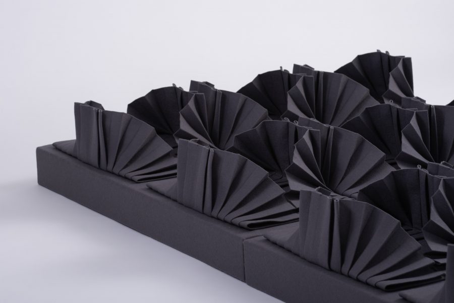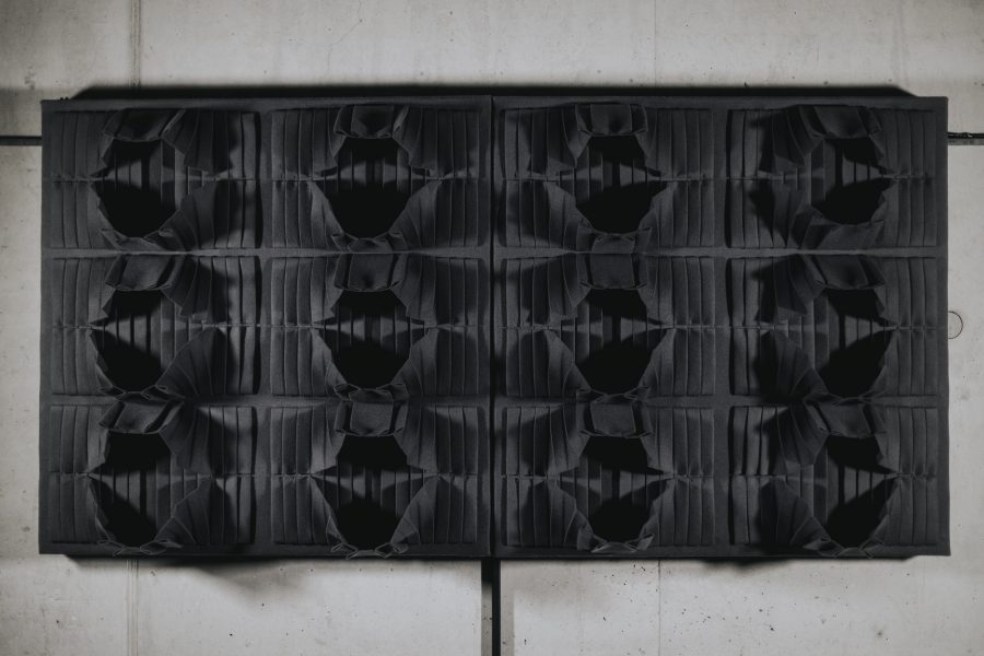 Tekstiilpaneeli prototüüp on loodud naturaalsest, jätkusuutlikust ja biolagunevast villasest vildist. Lisaks materjali helineelavatele omadusele annab kineetiline teos ka visuaalselt tekstiilimoodulite liikumisega märku ruumi liigsest müratasemest ning paneb ruumis viibijat seda ka märkama.