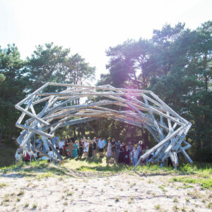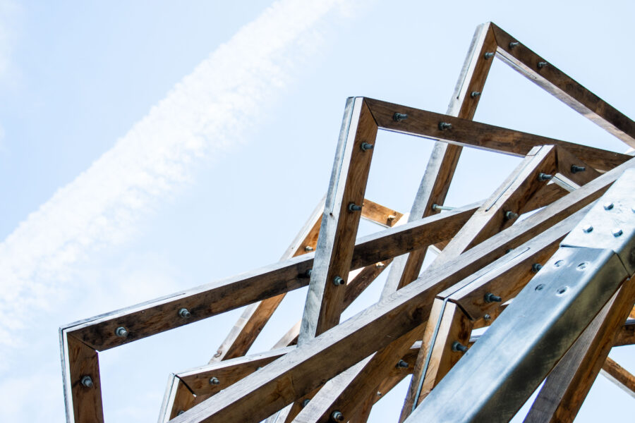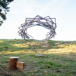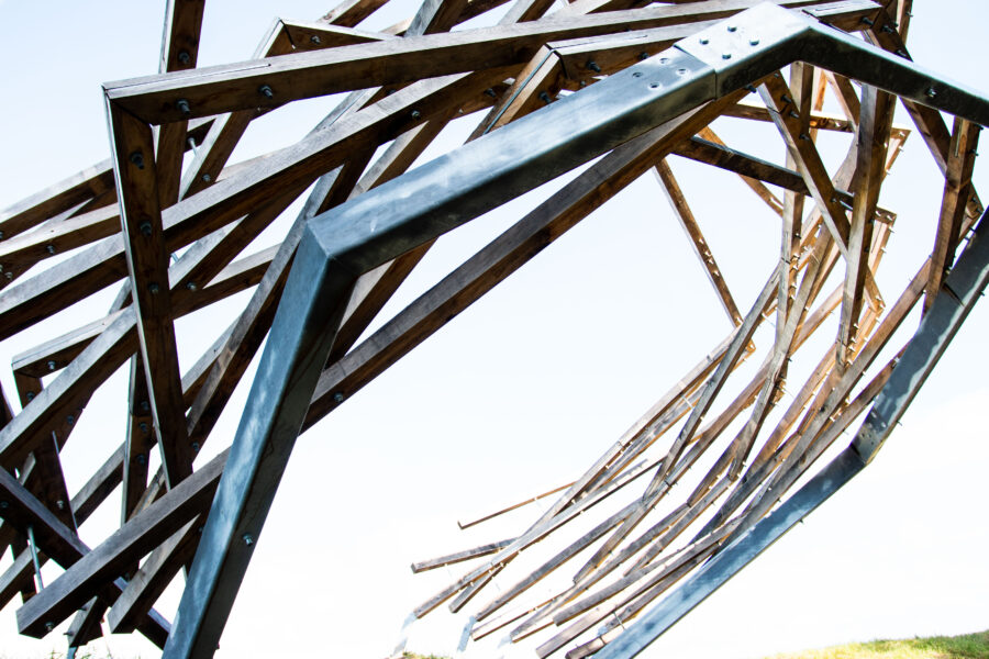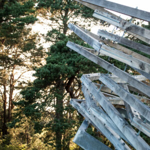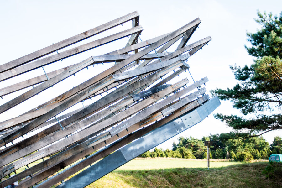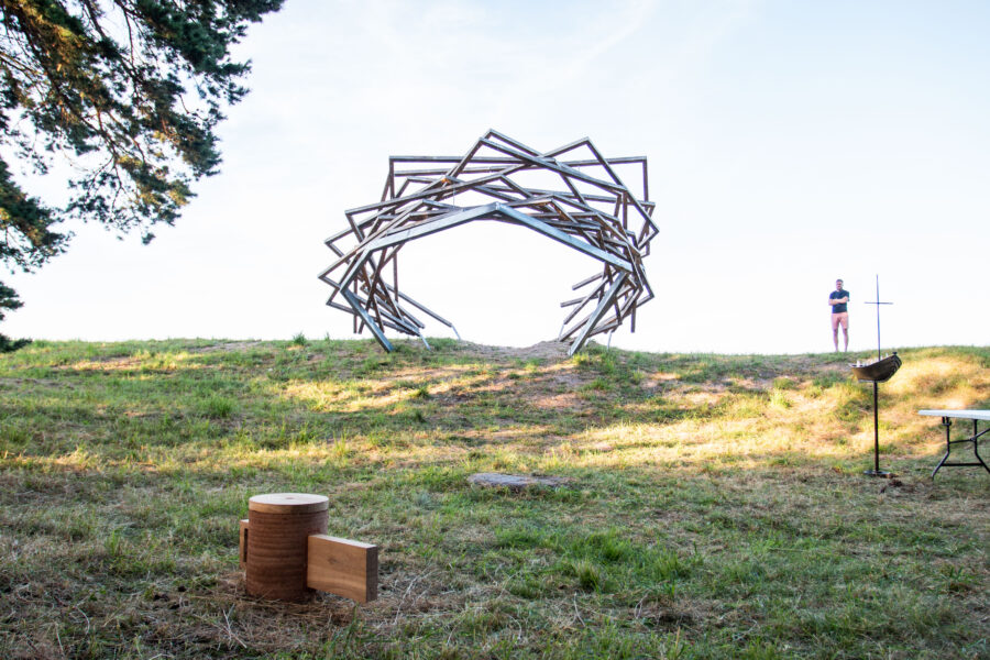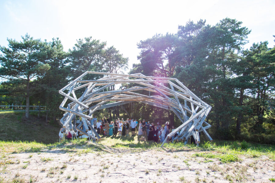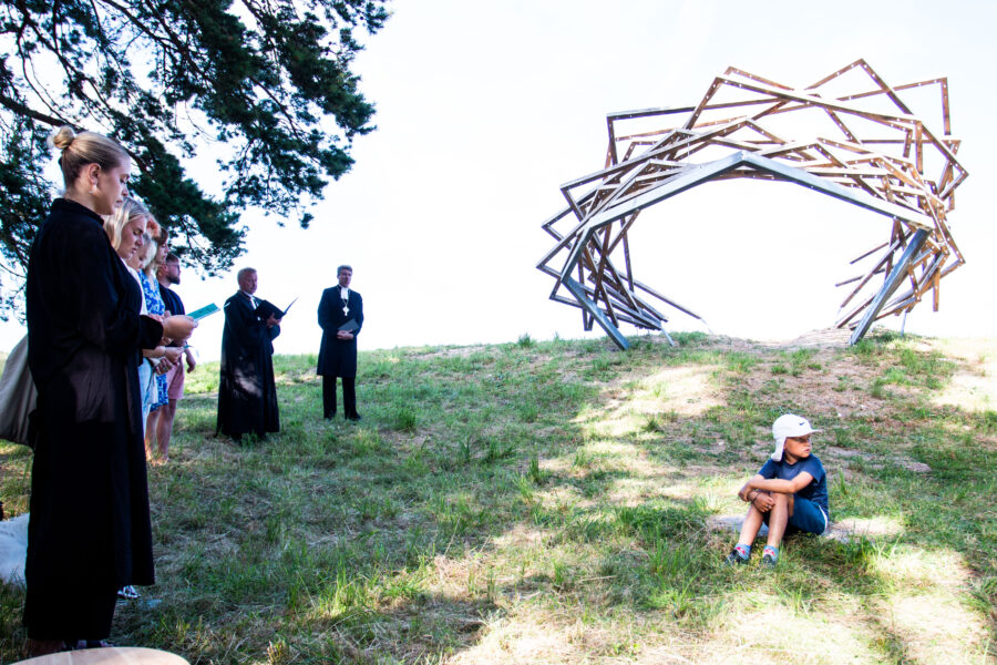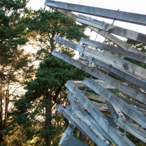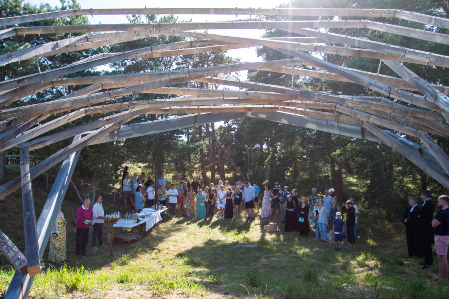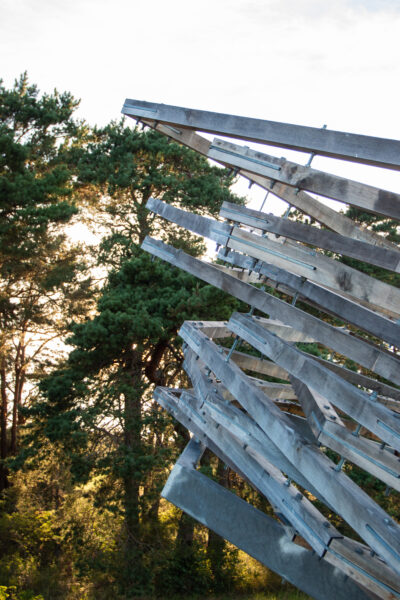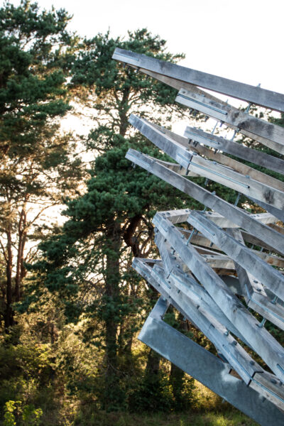 Kolumbaariumi materjaliks sai valitud Läänemaalt pärit tammepuit, millel on loomupärane suhe Saaremaa loodusrikkusega, metsadega, maalähedusega. Vorm on leitud ühest küljest jah linnupesast, mis on Vilsandi puhul loogiline, ent. “Pesa” on meie silmis ka portaal – värav, kui keskenduda matustega seostuvale ühest maailmast teise liikumisele, teispoolsuse piiri ületamisele. Või siis vaadata lahkumist linnuna taevasse tõusmisena. Konstruktsioon on mõeldud kaua kestma ja ajahambale vastu pidama, selleks on lahenduses kasutatud ka omajagu palju metallühendusi ning suuremõõtmelist toestustala.