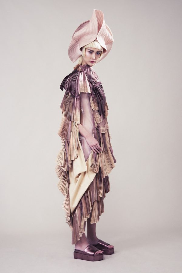 13. oktoobril Tartus toimuval Moekuulutaja üritusel avaneb fenomenaalne võimalus näha viit Eesti Kunstiakadeemia (EKA) ja Hong Kongi Polütehnilise Ülikooli (HKPolyU) moemagistrantide koostööna valminud skulpturaalset moevormi. Jaanuaris Aasia ühes kuulsaimas metropolis 1600st bambuslehvikust valminud eksperimentaalsest kollektsioonist pool jõuab Moekuulutaja efektseima lavashow raames esmakordselt kodumaise publikuni. Liisi Eesmaa ja Piret Pupparti juhendatud projekt lahkab teemat “Skins&Shells “, mis vaatleb maailmas eksisteerivaid “kaitsemembraane” – olgu tegu idamaiste templite katuste, eksootiliste putukate kestade või jaapani portselanist inspireeritud õrnusega. Lisaks tuleb Tartus eksponeerimisele kõikidest vormidest valminud fotoseeria.