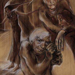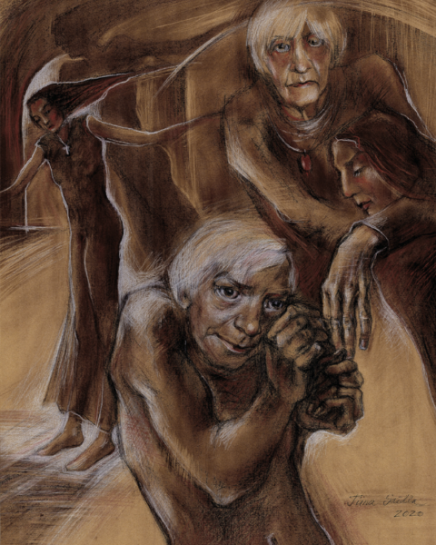 Kui vanem inimene meenutab olnut ja ehk tahab kirjutada memuaare, siis mõtlesin, ehk võiks lugusid pildikeeles jutustada. Mõni aeg pärast ema surma lappasime pojaga perekonna fotoalbumeid. Sealt tärkas idee – siit midagi saab! Nii valmiski 2018–2019 grafiitpliiatsiga joonistatud sari “Mängu ilu”. Sarja “Draama ilu” joonistasin, mõeldes Kadrile, ta headele kui ka keerulistele päevadele. Tööd on valminud 2020–2022 ja teostatud pehmete materjalidega: süsi, seepia ja pastell.