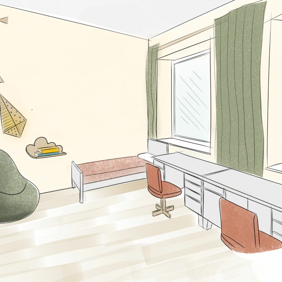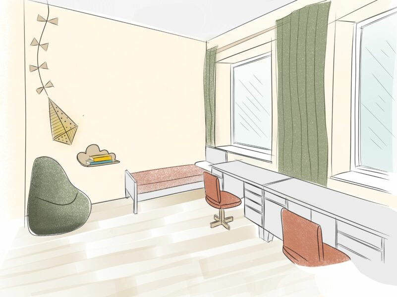 EKA disain ja innovatsiooni tudengite poolt loodud Tallinna Lastekodu lapse toa kontseptsioon. Autorid: Marju Randmer-Nellis, Birgit Paula Põder, Jane Tillmann, Johanna Põldemaa, Paula Valgus.