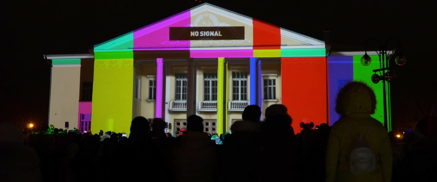 Mart Ermani videomappingu töö Kohtla-Järve kultuurimaja fassaadil.