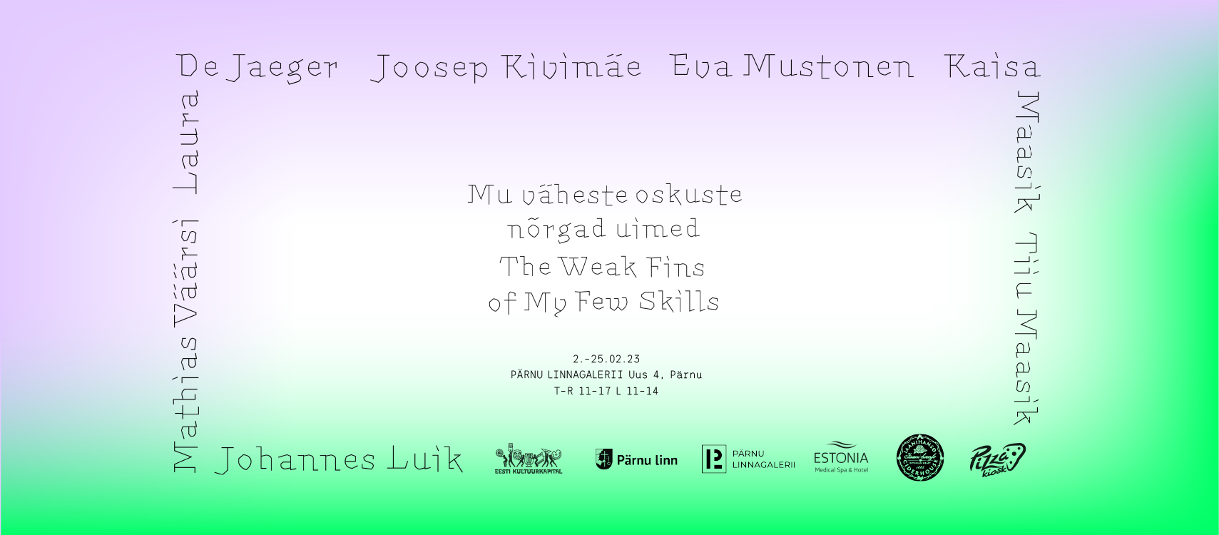 Спонсоры выставки: Академия художеств Эстонии, кафедра дизайна моды; Программа родственных народов; Культурный капитал; НКО Fenno-Ugria; NART; Нарва – столица финно-угорской культуры 2025