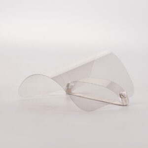 Lõmaš: Lisaks kasutajamugavusele seisnes nende kõikide komponentide läbimõeldus ka erinevatele materjalide ligipääsetavusega, mis oli sellel hetkel suur probleem. Järsku hakati kaitsevahendeid ohtralt tootma, piirid pandi kinni, materjale ei liikunud. Asjaolu, et me kasutusel oleva plastiku saime, oli suur vedamine ja mitmete erinevate ettevõtetega läbirääkimiste küsimus. Kumm ja vahekinnitused pärinevad teistest tööstusaladest – aukudega kumm rõivatööstusest ja nööbid kinnituselementidena kokka jakkidelt. Nende kasutamine valmis elementidena paistis mõistlik, kuna need ei paistnud lähiajal otsa saavat. See andis meile materjali kasutuses enesekindluse, et olemas on materjalivaru. Kasutajasõbralikkuse juures oli oluline ka asjaolu, et visiiri oleks võimalik ise kokku panna. Me ei tahtnud luua disaini, mille puhul komplekteeriksime visiirid valmis ja need võtaks palju ruumi, seisaks haigla laoruumis ja oleks inimestel ees, vaid et toomise ja väljasaatmise hetkel oleks need lapikult pakendatavad. Hanna tegi meile sellest tulenevalt ilusa ja lihtsa illustratsiooni, kuidas visiiri kokku panna. Need olid ka suured eelised – toode ei võtnud palju ruumi, seda oli kerge kokku panna ja komplekteeritavuselt saab vajadusel üksikuid detaile välja vahetada ning tekitada seega vähem jäätmeid.