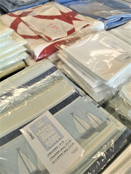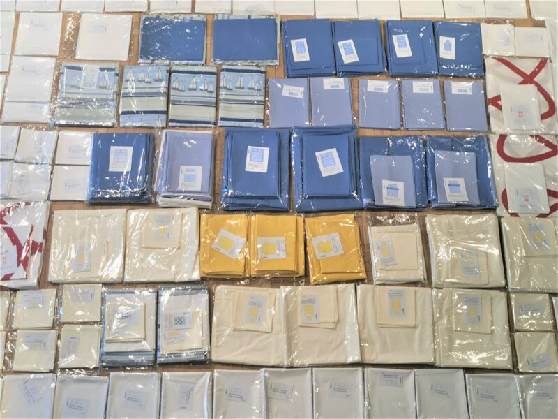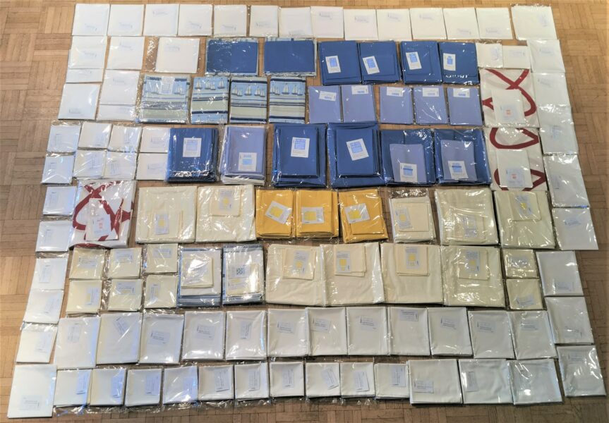 Materjalina kasutati tegevuse lõpetanud voodipesuettevõtte pooleliolevat toodangut. See tähendas, et juurdelõikus oli ettevõtte poolt näteks padjapüüridele tehtud ja teinekord ka üks või kaks küljeõmblust olemas. Esemed tuli lõpetada või enamikul kordadel valmis õmmelda nullist. Lisaks laekus puuvillaseid voodipesu kangaid juurde ka teistelt annetajatelt, et ette võtta suuremate täiskasvanutele mõeldud komplektide valmistamine.