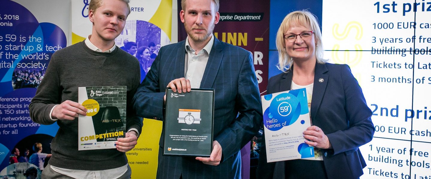 * tootedisaini tudeng Kevin Laus aitas luua päikesepaneelide ja tekstiili ühendamisele ärimudelit, millega saavutati 2. koht. Auhinnaks saadi 500 eurot, aasta tasuta veebimaujutust ja piletid Latitude59’le.